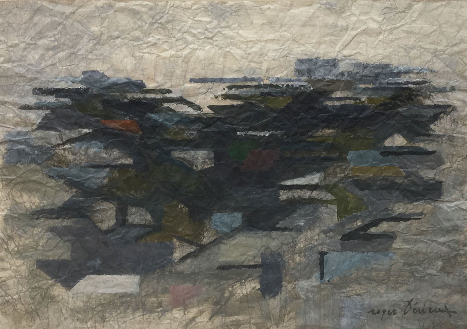 1953 Roger Dérieux fréquente des artistes de sa génération, souvent autour de Garbell : Gustave Bolin, Jacques Germain, Cottavoz, Bernard Dufour, Philibert Charrin, Ravel, et des aînés : Marie Raymond, Geer Van Velde et surtout Francisco Bores et Gérard Schneider qui le fait inviter pour la première fois au Salon de Mai, auquel il participera pendant plusieurs années. Invité au Salon d’Octobre, initié par Charles Estienne pour « Hommage à Picabia », Galerie Craven, Paris.